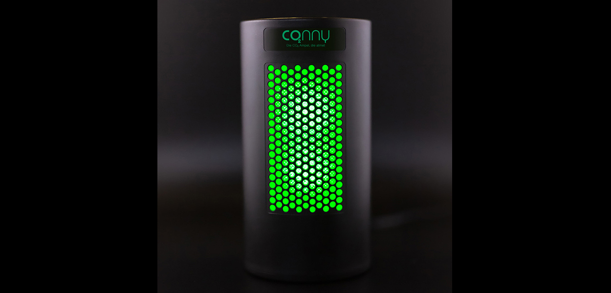 Und wie funktioniert „Conny, die CO2-Ampel, die atmet"? Der in dem smarten Gerät eingebaute Sensor misst stetig und präzise den aktuellen CO2-Gehalt der Raumluft. Anhand der vom Umweltbundesamt vorgegebenen Grenzwerte interpretiert die Ampel die Werte. Gute Luft mit einem CO2-Anteil von unter 1.000 parts per Million (ppm) wird grün dargestellt. Ist der Messwert erhöht und Aufmerksamkeit gefragt, leuchtet die Ampel gelb. Wenn es Zeit ist, den Raum zu lüften oder zu verlassen, so wird dies durch rotes Licht signalisiert.