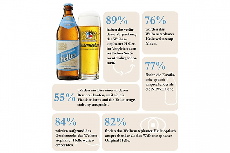 Das neue Weihenstephaner Helle, im Vergleich zum bestehenden Weihenstephaner Original Hellen, mit niedrigerem Alkoholgehalt und abgefüllt in der Euro-Flasche, fand positiven Anklang in allen Altersgruppen. Dabei hat die neuartige Verpackung die meisten Probanden veranlasst, dieses neue Produkt zu kaufen und zu verkosten. Bestätigt durch den Geschmack hat sich schnell ein neuer Kundenstamm entwickelt, der nicht mit dem des Weihenstephaner Original Hellen korreliert, da dieser Absatz nahezu unverändert ist. So ist es der Bayerischen Staatsbrauerei Weihenstephan gelungen, mit dem Weihenstephaner Hellen einen neuen Absatzmarkt zu erschließen, ohne mit eigenen Produkten zu konkurrieren.