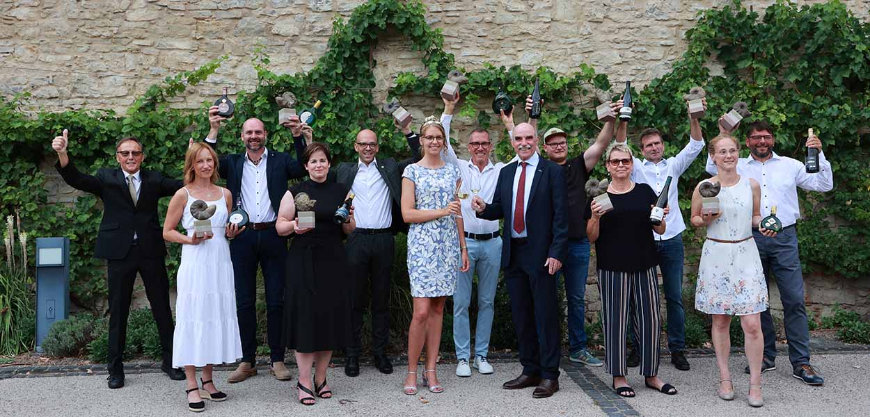 Diese Siegertrophäe spiegelt die Einzigartigkeit der fränkischen Weine und Böden wider. Der Urzeitkopffüßer lebte vor 225 Millionen Jahren auf dem Gebiet des heutigen Weinanbaugebiets Franken – damals entstand die einzigartige Gesteinsformation aus Keuper, Muschelkalk und Buntsandstein. Diese Trias macht Franken einzigartig unter den Weinanbauregion dieser Welt.